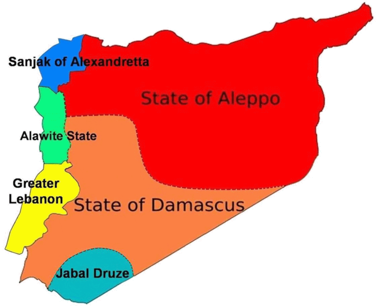 State of Aleppo and State of Damascus - The French divided the Sunni Arab majority into two states to play off the cities of Aleppo and Damascus against each other. Interestingly, while the Syrian Civil War is widespread it is not really an Aleppo versus Damascus conflict as much of the most intense fighting has been around Homs and Hama, both in the old State of Damascus.